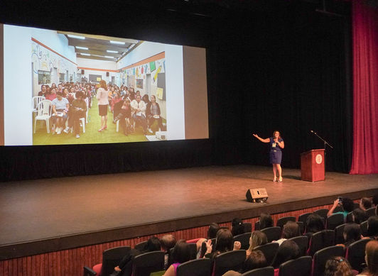 A palestrante convidada, Cecília Vasconcellos, emocionou com uma fala profunda sobre educação inclusiva, reforçando o compromisso do Grupo com escolas que acolhem, respeitam e transformam.